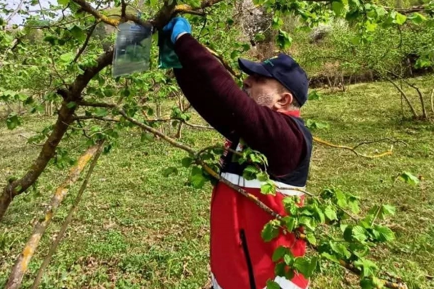 Müdürlükten yapılan açıklamada, "Ülkemizde hızla yayılım gösteren ve polifag bir zararlı olan kahverengi kokarca zararlısının ilçemiz tarım alanlarındaki mevcudiyetini tespite yönelik olarak Düz, Hacı ve Gencek köylerimize feromen tuzak yerleştirme çalışmaları İlçe Müdürlüğümüz teknik personellerince gerçekleştirilmiştir" denildi.