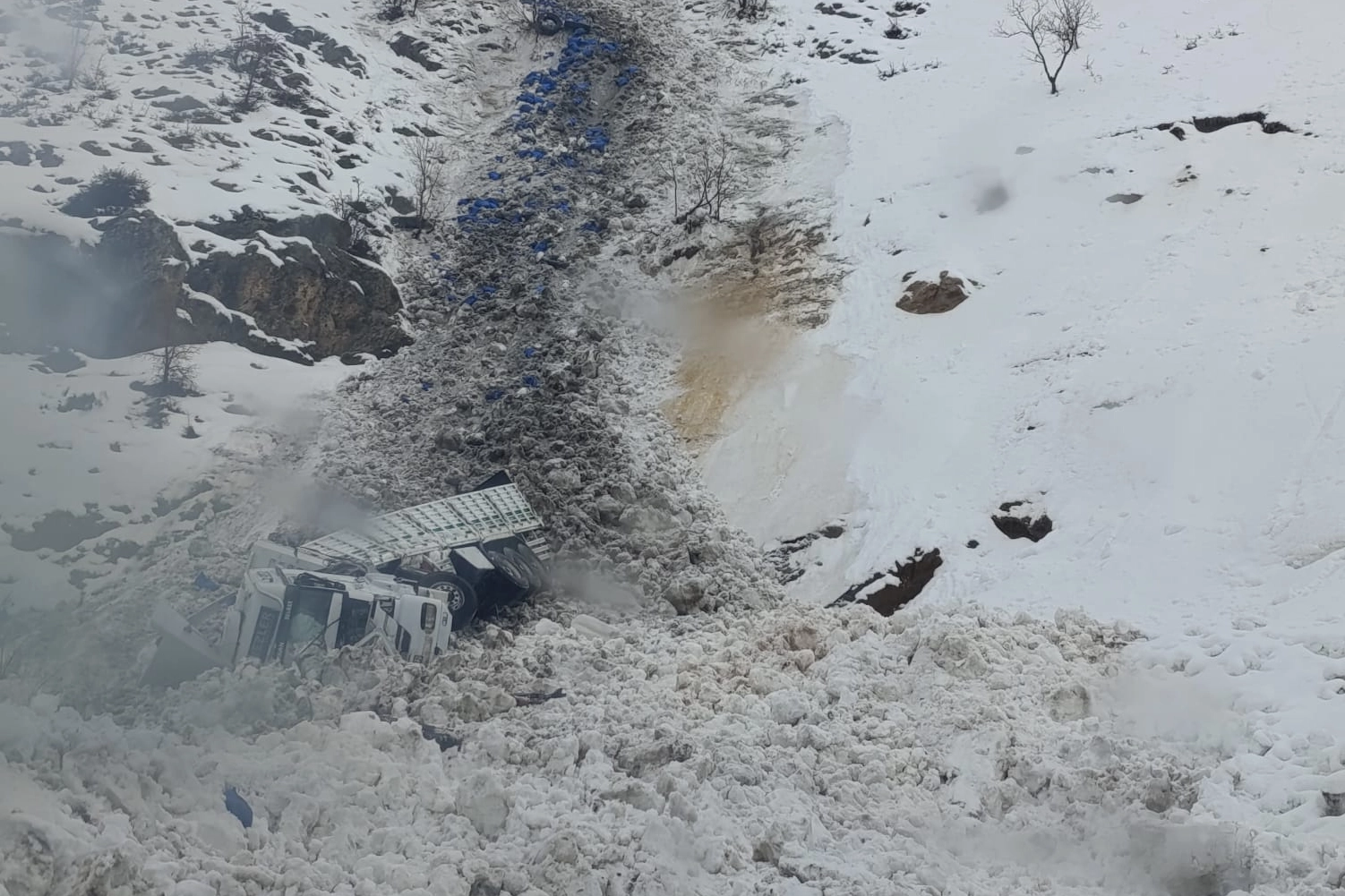 Çığ düşmesi sonucu tır şarampole devrildi. İhbar üzerine bölgeye AFAD, 112 Acil Sağlık, Karayolları, İl Özel İdaresi ve jandarma ekipleri sevk edildi.