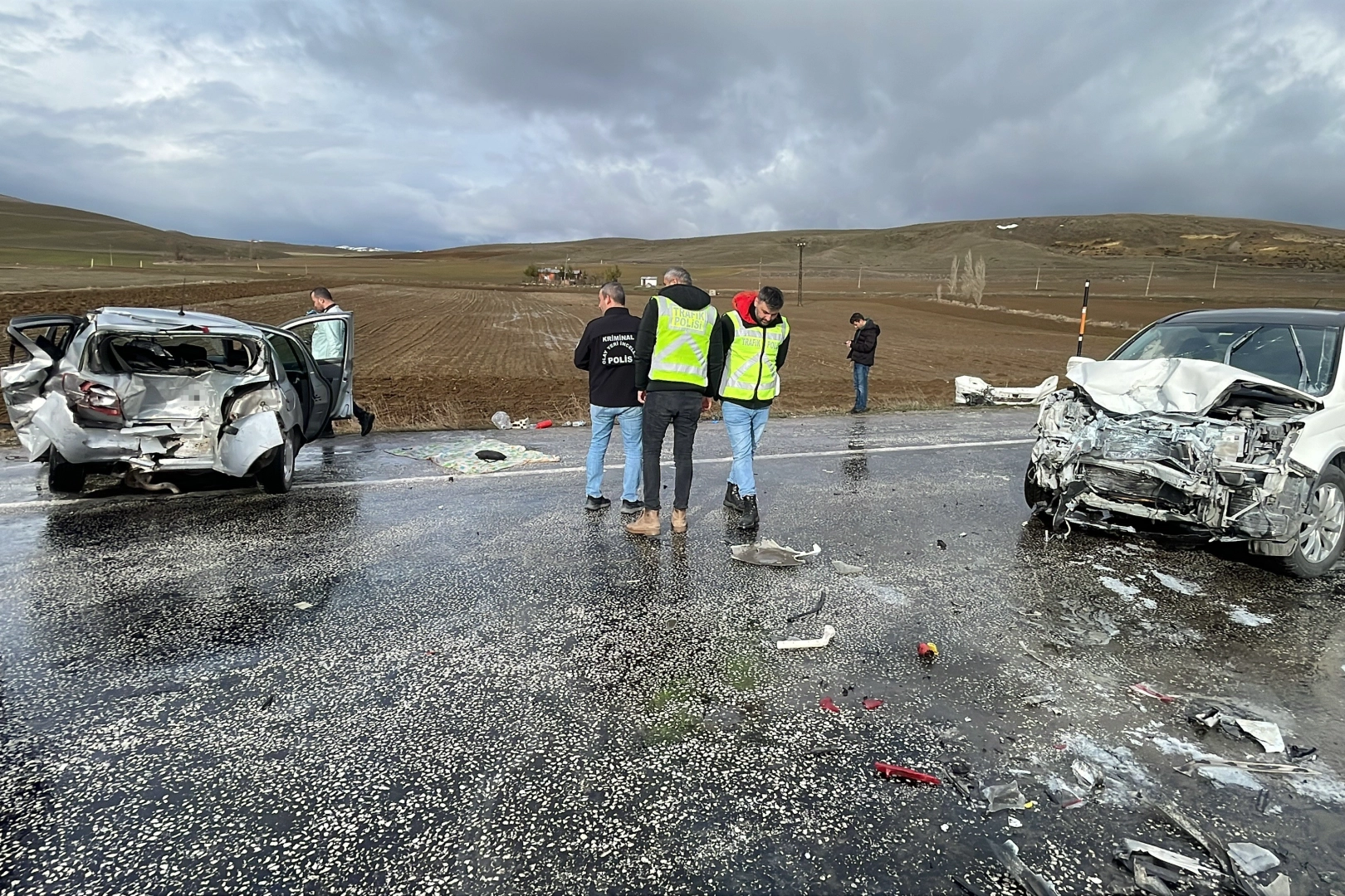 Kazada cipte bulunan sürücü E.B.'nin (41) yanı sıra B.B. (35), Y.S.B. (10), ve Z.S.B. (2) yaralandı. Kontrolden çıkan 60 ACF 461 plakalı otomobil sürücüsü H.A.D. (34) ile Mustafa Caner Akçay (31) yaralandı. Kazayı görenlerin ihbarı üzerine olay yerine sağlık ve polis ekipleri sevk edildi. Yaralılar ambulanslarla Yıldızeli Devlet Hastanesi'ne sevk edildi. Durumu ağır olan Mustafa Caner Akçay (31) kurtarılamayarak hayatını kaybetti. Kaza ile ilgili inceleme başlatıldı.