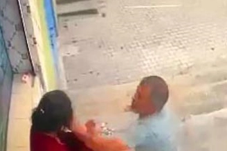Olayı gören bir kişi ise kadının kocasını yumruklayıp etkisiz hale getirdi.