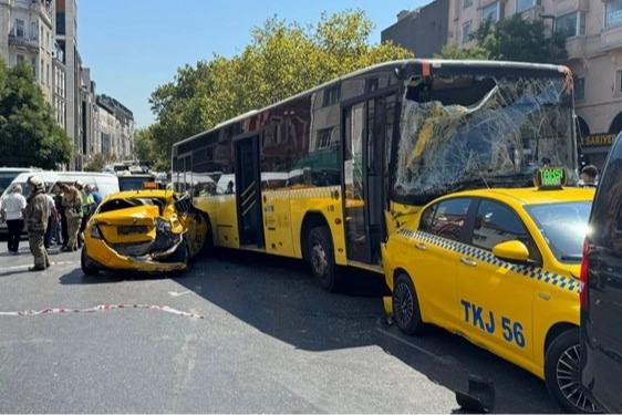 Tarlabaşı Bulvarı'nda özel halk otobüsü ile çöp kamyonunun da aralarında bulunduğu 10 araçlık zincirleme trafik kazası meydana gelmişti.