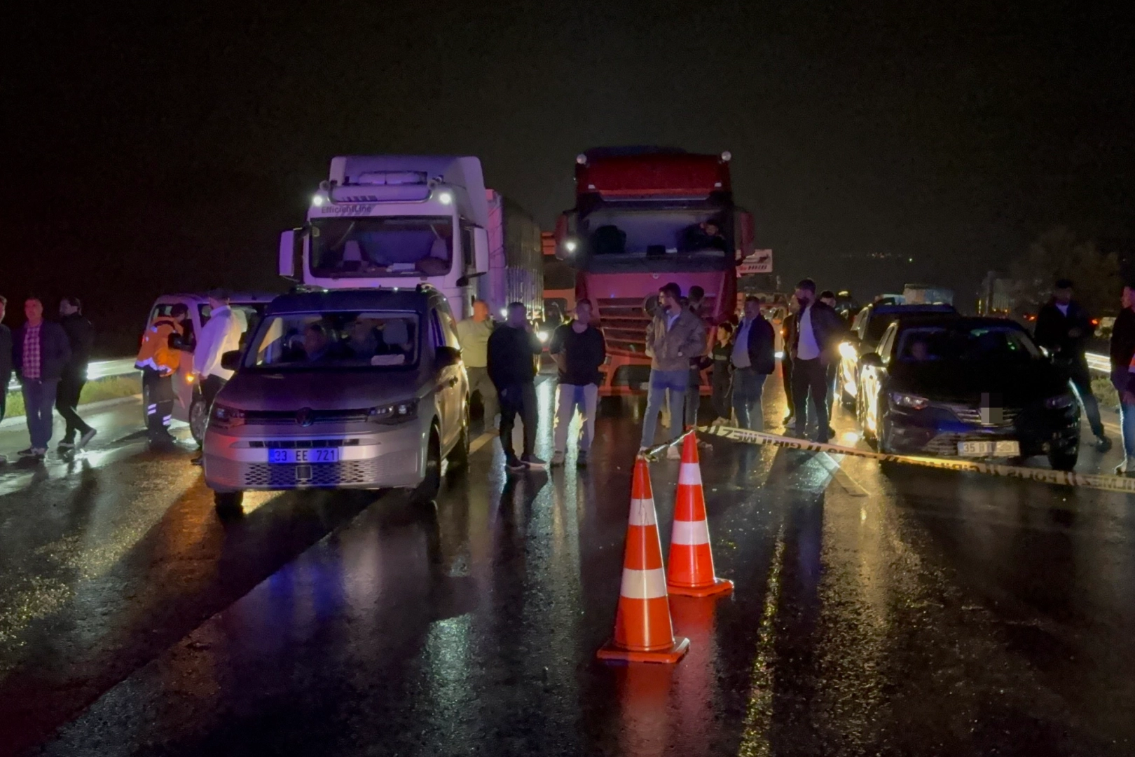 Kaza, Tarsus-Adana-Gaziantep Otoyolu Nurdağı istikametinde meydana geldi. İddiaya göre, Nurdağı istikametine seyir halindeki Ahmet A. (40) idaresindeki 27 AHH 663 plakalı kamyonet, yağışlı hava nedeniyle kayganlaşan yolda savrularak karşı şeride uçtu. Kamyonet, karşı şeritte Gaziantep istikametine seyir halinde olan S.A. kontrolündeki 13 ABA 722 plakalı tır ile çarpıştı. Kaza sonrası olay yerine çok sayıda jandarma, itfaiye ve sağlık ekibi sevk edildi. Olay yerine gelen ekipler, kamyonette yolcu olarak bulunan Halil Çelik’in hayatını kaybettiğini, sürücü Ahmet A.'nın ağır yaralandığını belirledi. Yaralı sürücü sağlık ekiplerinin ilk müdahalesi sonrası hastaneye kaldırılırken, Çelik’in cenazesi olay yeri incelemelerinin ardından morga kaldırıldı.