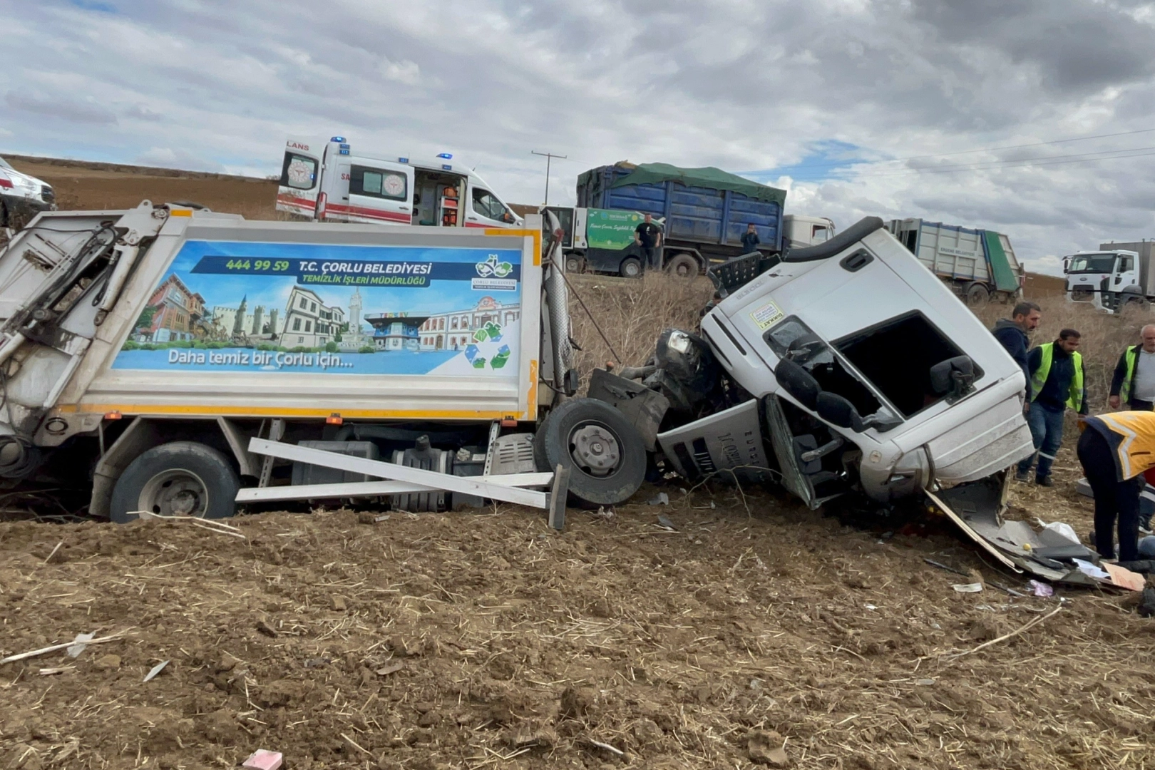 Kaza, Hatip Mahallesi çöp döküm sahası yolu üzeri Karatepe Kümeevleri mevkiinde meydana geldi. Çorlu’dan Karatepe istikametine seyreden Şerif E. idaresindeki Çorlu Belediyesi çöp kamyonu, sürücüsünün direksiyon hakimiyetini kaybetmesi sonucu yoldan çıktı. Çöp kamyonunun metrelerce yüksekten şarampole çakılması sonucu kabini ters döndü. Can pazarının yaşandığı kazada olay yerine çok sayıda ambulans ekibi sevk edildi. Sürücü Şerif E. ve araçta bulunan Ahmet İ. ve Gökberk H. yaralandı.Yaralılar, olay yerine gelen sağlık ekiplerinin ilk müdahalesinin ardından belediye görevlilerinin de yardımıyla patikadan çıkarılarak ambulansa getirildi. Yaralı 3 belediye işçisi, ambulanslarla hastanelere sevk edildi. Tedavi altına alınan 3 yaralının hayati tehlikesinin olmadığı öğrenildi.