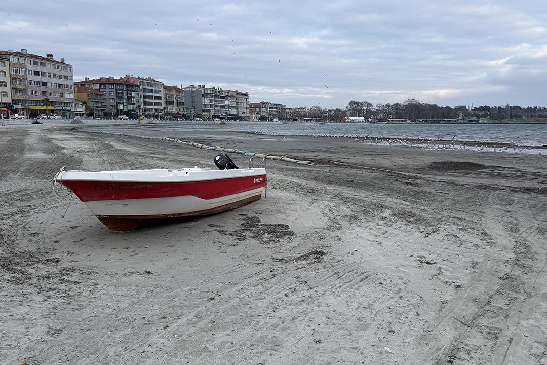 Tekirdağ'ın Marmaraereğlisi ilçe merkezindeki sahilde deniz suyu 10 metre çekildi.