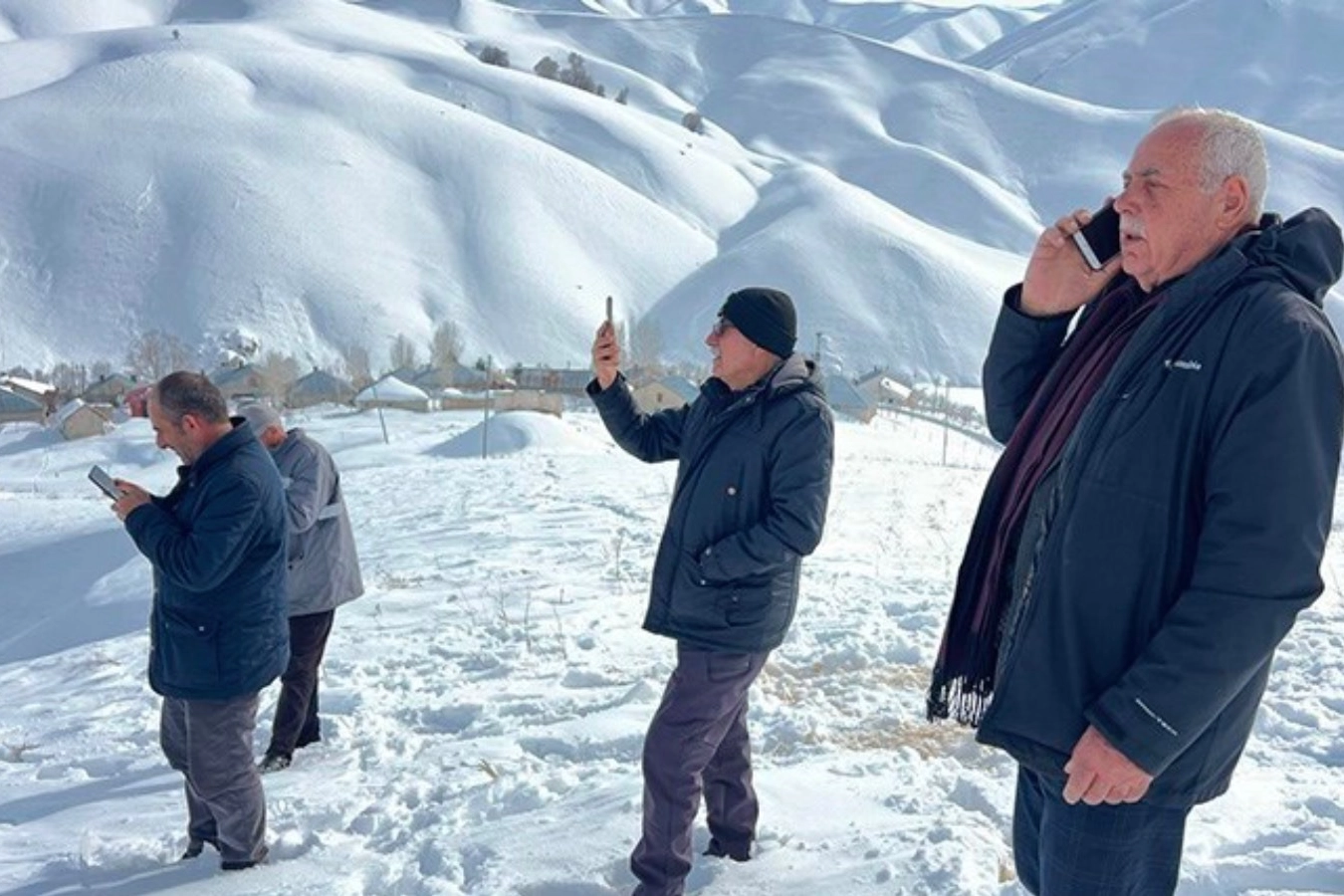 Yüksekova ilçe merkezine 20 kilometre uzaklıkta bulunan Gürkavak köyünün 40 haneli Yeşildere mezrasında yaşayanlar, telefonla konuşmak için karlı yollardan geçerek yüksek tepeye çıkıyor.