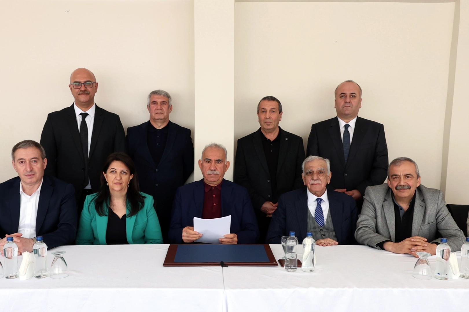 Biliyoruz ki şimdi cezaevlerindeki arkadaşlarla bizi izliyorlar, onları da yüreğimizle selamlıyoruz. Değerli arkadaşlar hepinizi saygıyla selamlıyoruz. Hoş geldiniz. Biraz önce zamanı kullanmak adına teşekkürlerimizi ettik. Kayıplarımızı anmak seneler sürecek. Barışa omuz veren bunun için bedel veren bütün insanlarımıza teşekkürlerimizi bildirerek başlamak istiyorum. Kışın bitip baharın geleceği şu günlerde umudu yeşertmeye gittik. Barış umudunu yeşertmeye gittik. Varlığımız bu umudu yeşertmenin uğrunda geçti, bundan sonra da böyle olacak. Emeği geçen bütün siyasilere Sayın Cumhurbaşkanına Sayın Bahçeli'ye Sayın Özel'e teşekkür ediyoruz. Sayın Öcalan mesajını verdi, tarihin bir kırılma aşamasındayız. Olumlu bir kırılma.