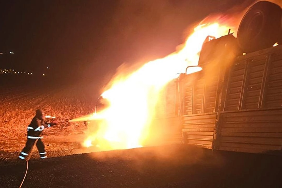 Mardin’in Nusaybin ilçesinde şoförünün kontrolünden çıkarak devrilen tır alev aldı. Tırda mahsur kalan şoför Mustafa Çiftçi yanarak hayatını kaybetti.