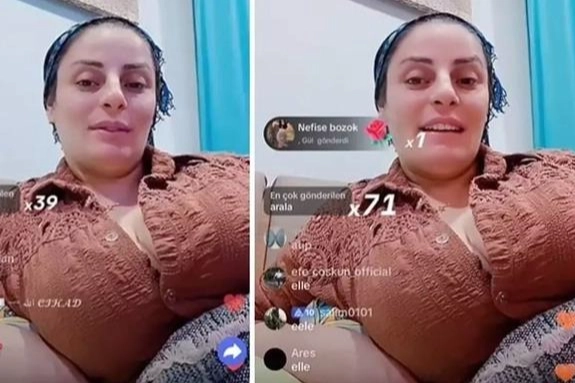 TikTok'ta "@lazkizi3405" ismiyle canlı yayın açan kadın kendisine para atılsın diye üzerindeki gömleğin düğmelerini açıp dekolte verdi.
