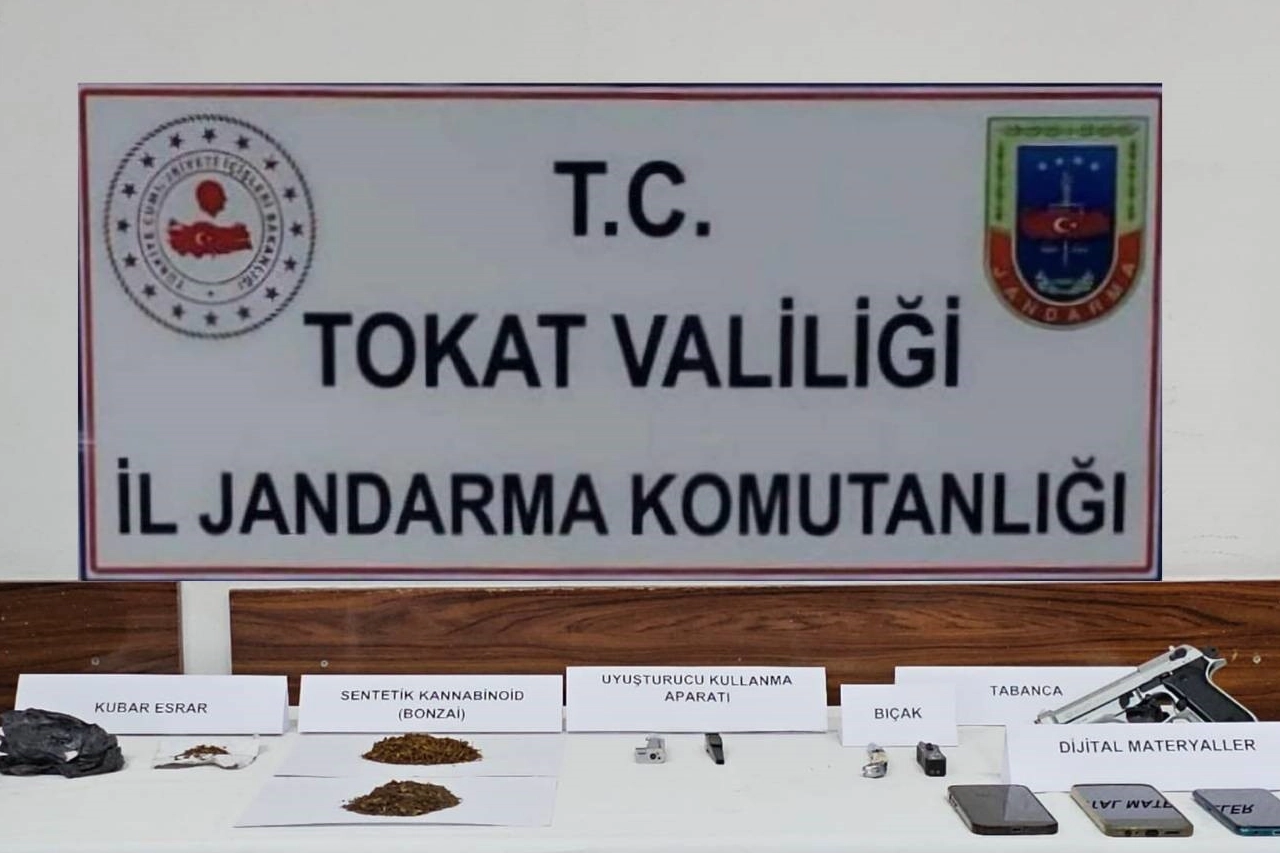 Edinilen bilgilere göre, Tokat İl Jandarma Komutanlığı ekipleri, Reşadiye ilçesinde bazı şahısların uyuşturucu madde ticareti yaptığı yönünde alınan istihbarat üzerine harekete geçti. Şüphelileri teknik ve fiziki takibe alan ekipler, adli makamlardan alınan arama kararı doğrultusunda operasyon düzenledi. Şüphelilere ait ev, iş yeri ve araçlarda yapılan aramalarda; 50 gram bonzai, 5 gram kubar esrar, 38 sentetik ecza hapı, 1 tabanca ile 5 cep telefonu ve SIM kart ele geçirildi. Operasyon kapsamında gözaltına alınan şüpheliler M.E., S.E., S.Ç., T.G. ve M.T., jandarmadaki işlemlerinin ardından adliyeye sevk edildi.