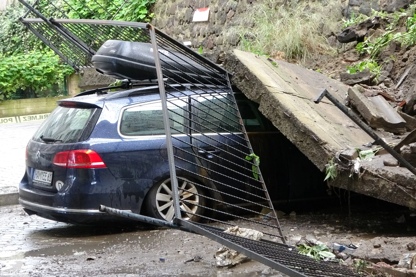 Olay, Akçaabat ilçesindeki Nefsipulathane mahallesinde meydana geldi. Sabah saatlerinden itibaren etkisini gösteren şiddetli yağışlar sonrası bir binanın istinat duvarı çöktü. İstinat duvarının önüne otomobilini park eden Güngör Pul'un (58) aracından indikten yaklaşık 2 dakika sonra çökme meydana geldi. O anlarda binanın önünde temizlik yapan kadın görevli de çöken istinat duvarının altından kalmaktan dakikalarla kurtuldu. İstinat duvarı altında kalan yabancı plakalı otomobilde maddi hasar meydana gelirken, o anlar binanın güvenlik kamerasına yansıdı. Binanın çevresinde güvenlik önlemleri alınırken, belediye ekipleri tarafından çalışma başlatıldı.