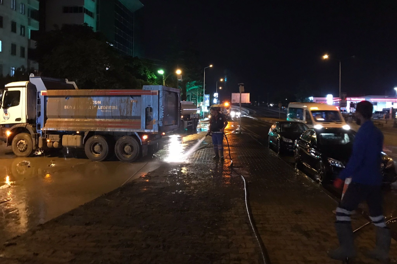 Şehrin en hareketli bölgeleri olan iki noktada selin getirdiği çamur birikintilerinin temizlenmesi için yoğun çaba harcayan Büyükşehir Belediyesi ekiplerinin çalışmalarının sabaha kadar süreceği öğrenildi.
