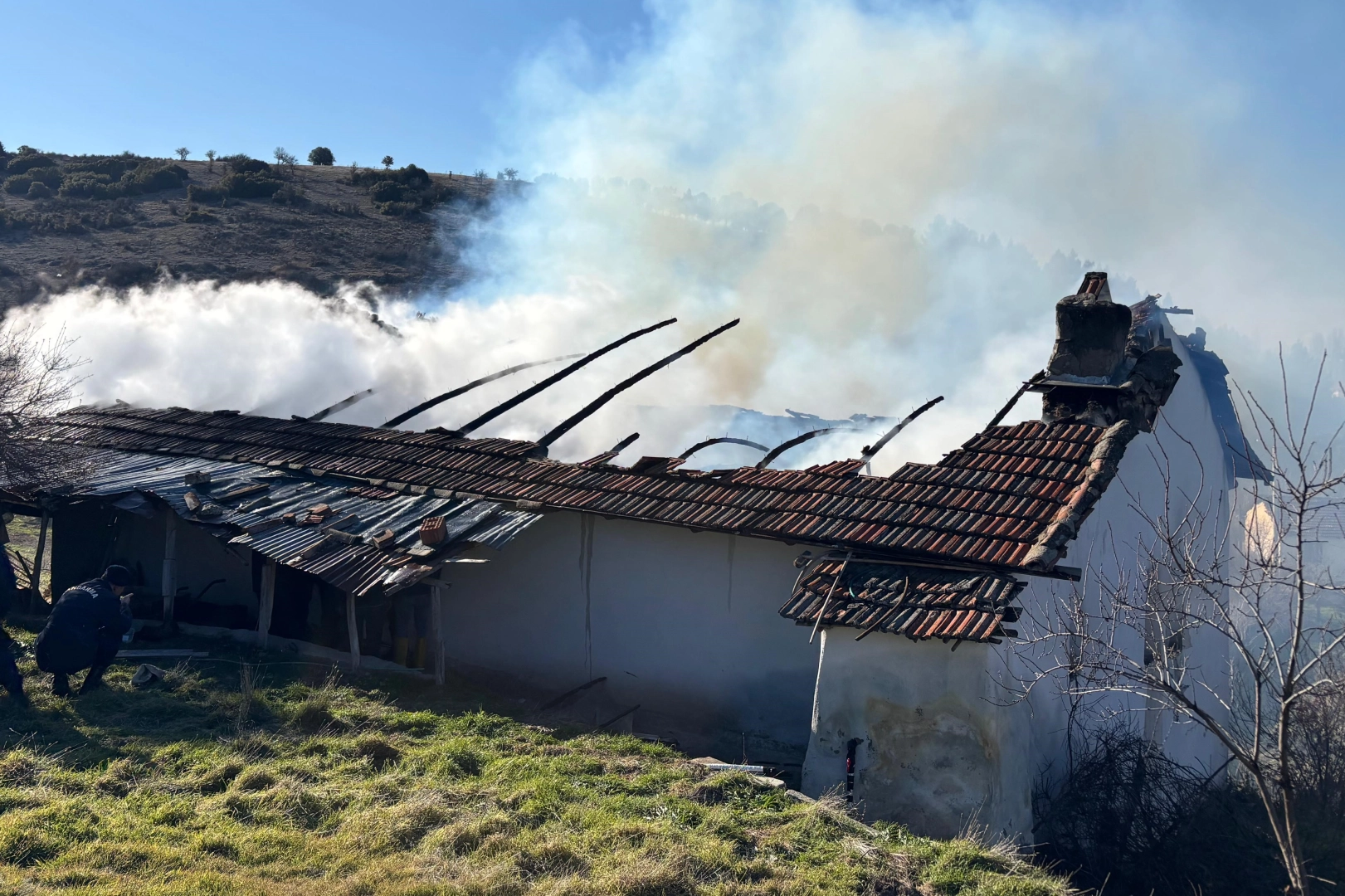 Çevredeki vatandaşların durumu 112 Acil Çağrı Merkezi'ne bildirmesi üzerine olay yerine 112 Sağlık, jandarma ve itfaiye ekipleri sevk edildi. İtfaiye ekiplerince yangın söndürülürken, evde büyük çapta hasar meydana geldi.