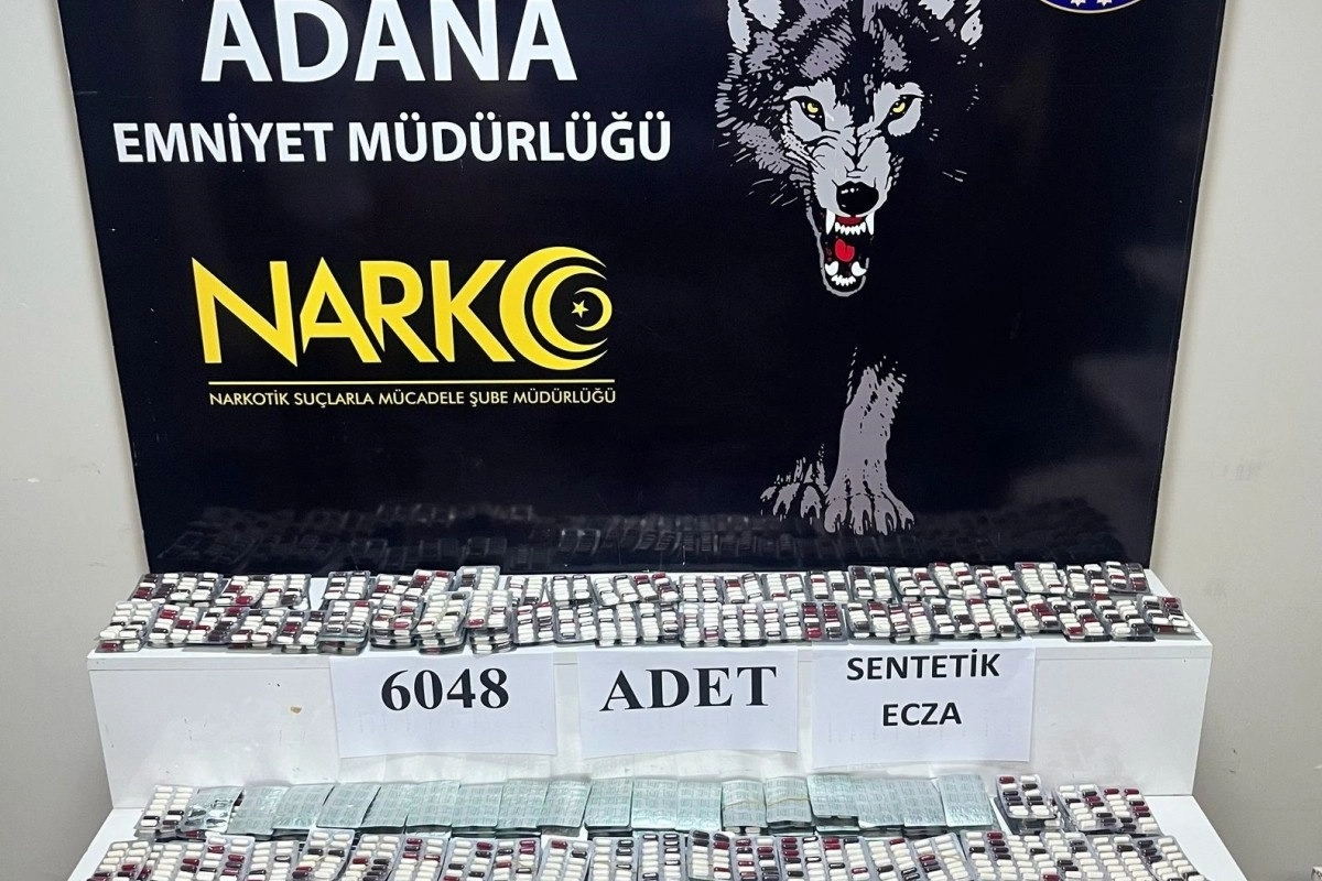 Şüphelinin evinde yapılan aramada, valiz içerisine gizlenmiş şekilde 6 bin 48 adet sentetik ecza ele geçirildi.