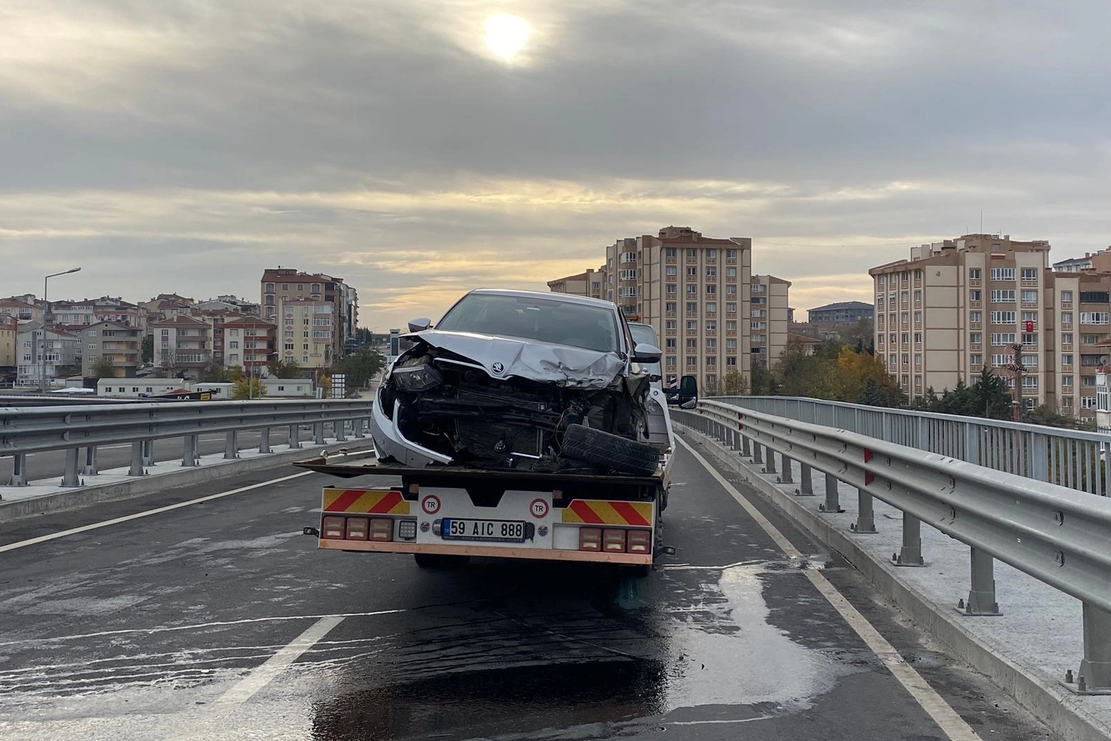 Kaza, Kapaklı ilçesi Yıldızkent Viyadüğü’nde meydana geldi. Elif S. yönetimindeki otomobil, Çerkezköy istikametinde seyir halindeyken yolun kaygan olması sebebiyle virajda kontrolden çıktı. Orta refüje çarparak duran araçta büyük çaplı maddi hasar meydana gelirken, sürücü Elif S. kazayı ufak sıyrıklarla atlattı.