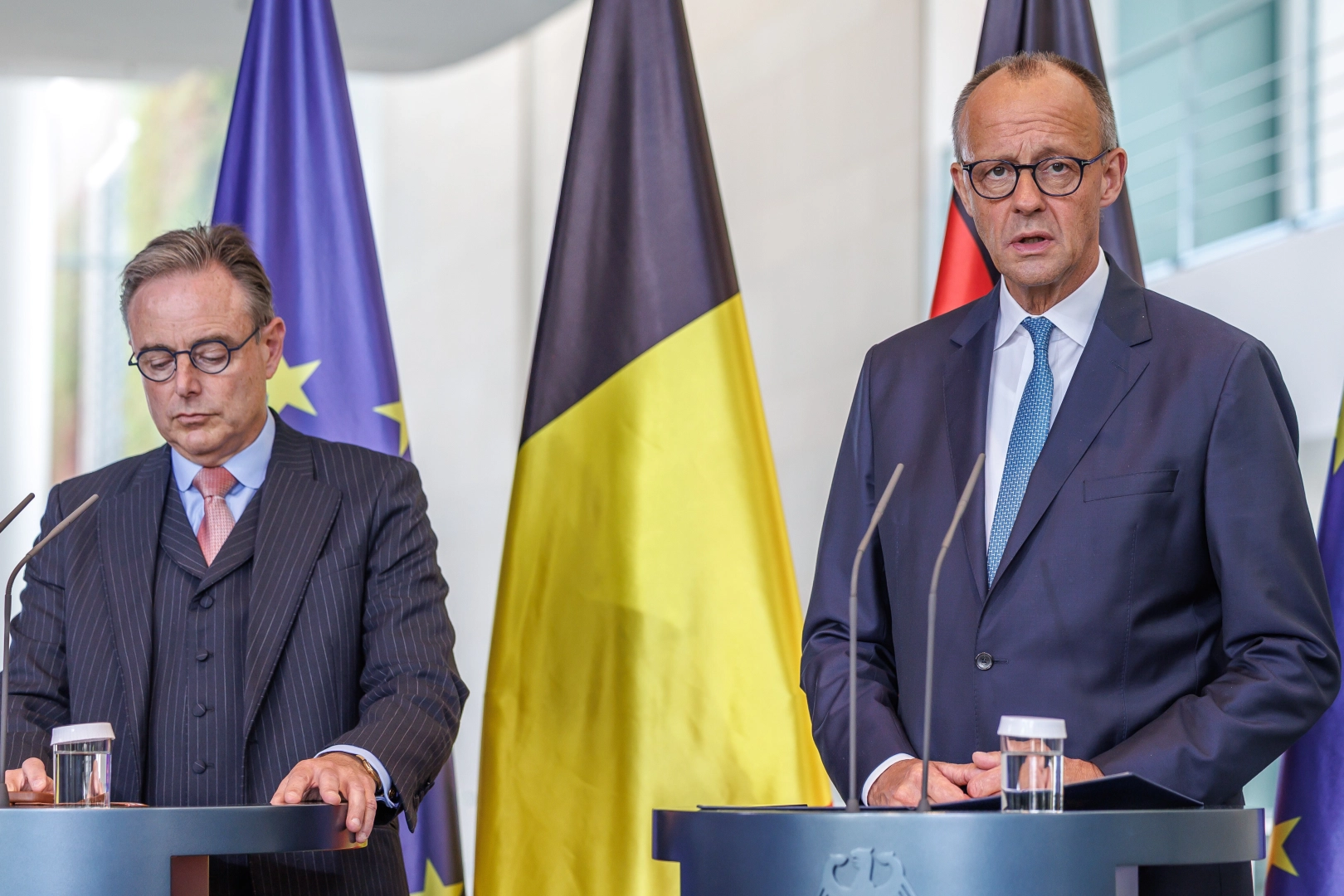Almanya Başbakanı Friedrich Merz ile Belçika Başbakanı Bart De Wever, Almanya'nın başkenti Berlin'de yaptıkları görüşmenin ardından ortak basın toplantısı düzenledi. Almanya Başbakanı Merz, görüşmede iki ülke ilişkilerini, organize suç örgütleri ve kaçakçılıkla mücadele adımlarını, düzensiz göç ve sınır güvenliğini, Rusya-Ukrayna Savaşı ile Orta Doğu'daki gelişmeleri ele aldıklarını belirtti.