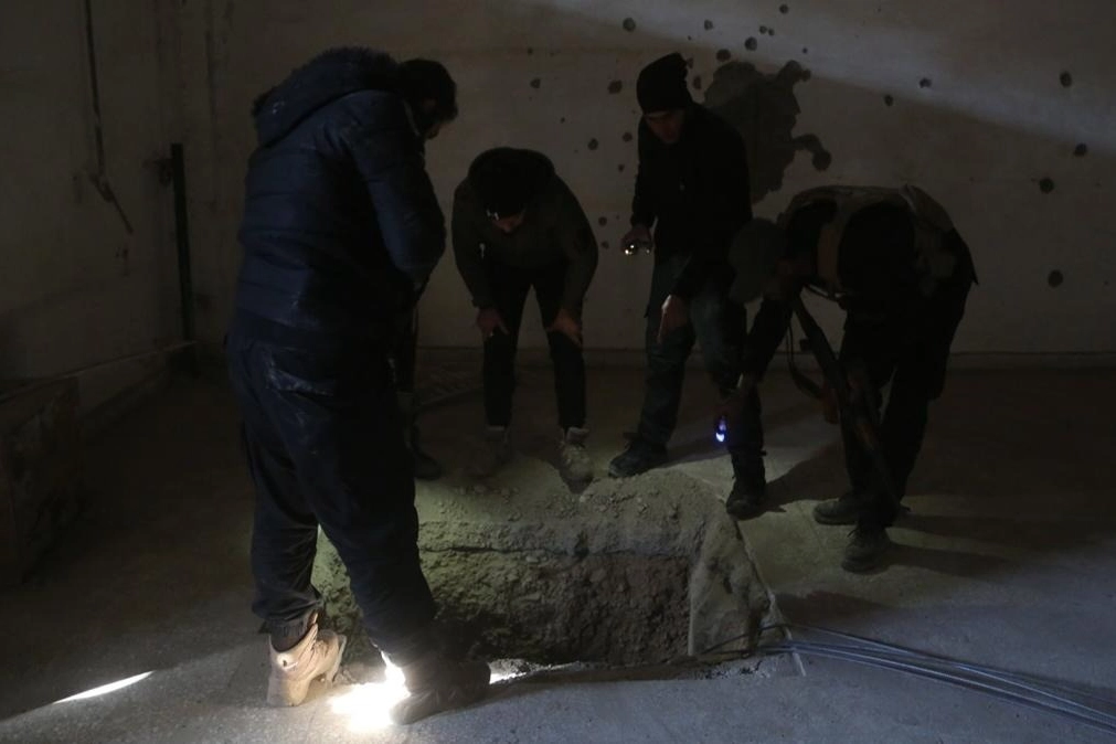 AA ekibi, Suriyeli askerler eşliğinde 19 Ocak'ta kurtarılan Rakka'da bulunan el-Esved Stadyumu'nun altında bulunan tünel şebekesi ve hapishaneyi video kaydına aldı.
