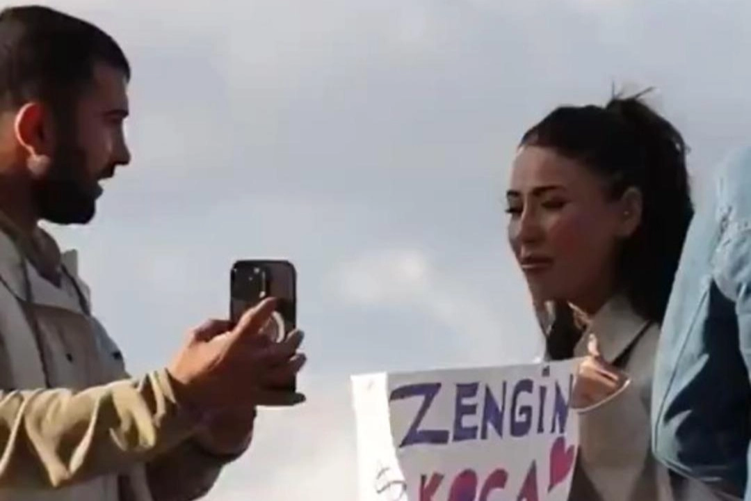 Kadının yanına ilk olarak elindeki telefonda görüntülü görüşme açık bir şekilde bir adam yaklaştı ve, "Bir koca buldum. Batmanlı. 1.80 boyu var. Petrolleri var. Seni Batman'da her yerde gezdirir. Hep bunların hepsi zengin. Bir tanesini bulsan tamamdır" dedi.