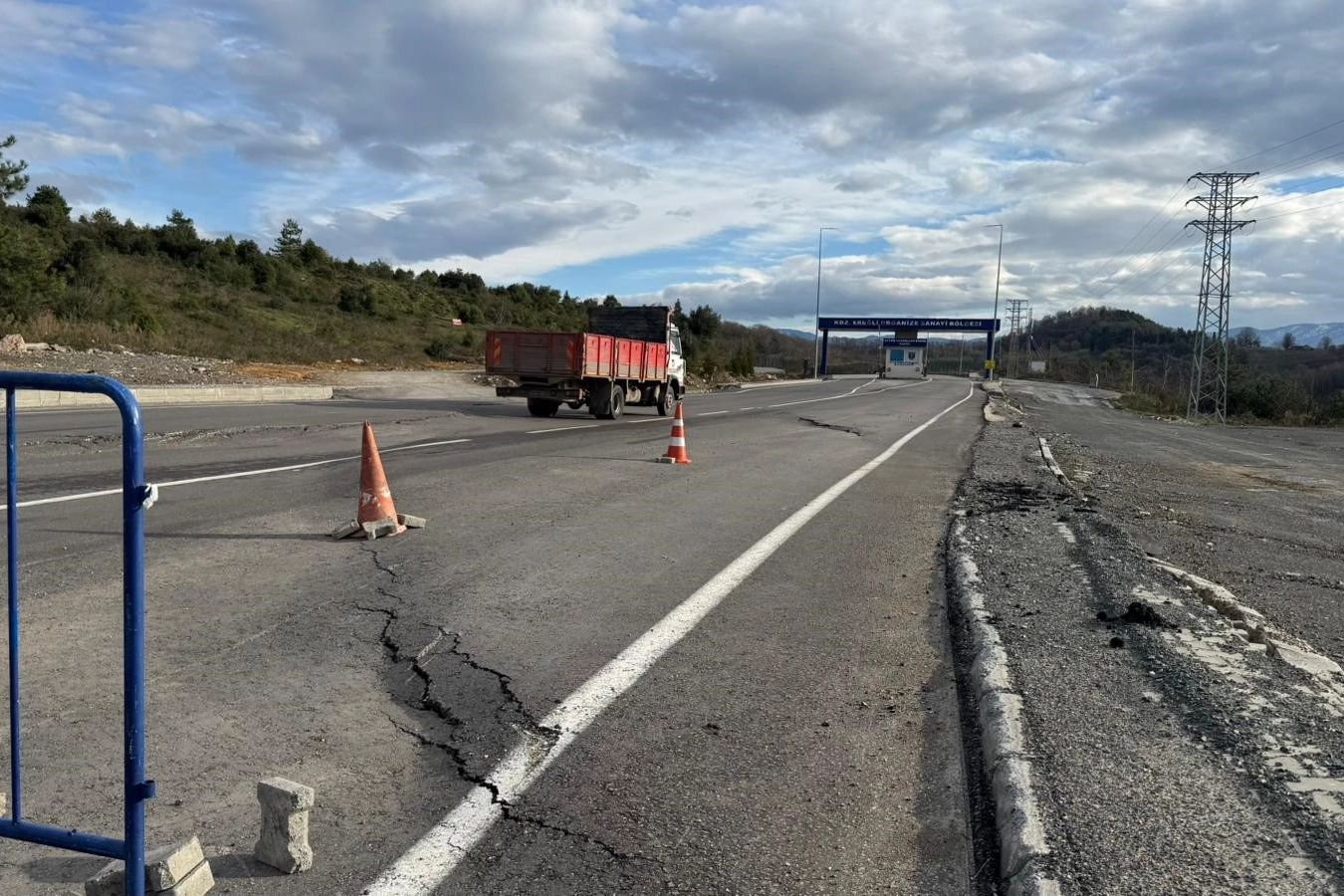 Edinilen bilgiye göre, Ereğli Organize Sanayi Bölgesi yolunda geçtiğimiz günlerde asfalt çalışması yapıldı. Ancak son günlerde etkili olan kar yağışının ardından, yolun asfaltlanan bölümünde çatlamalar oluştu ve bu bölgede göçmeler meydana geldi.