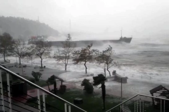 Ereğli Limanı'nda demirleyen Panama bandıralı kuru yük gemisi, bölgede etkili olan fırtına nedeniyle ikiye bölündü. Kıyıya sürüklenen geminin parçası, limanın beton duvarlarına çarptı ve kıyıdaki amfi tiyatroya zarar verdi.