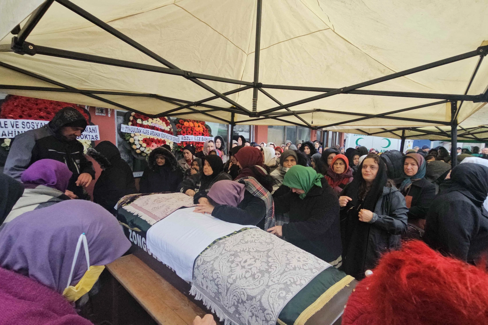 Nazmiye Esen için Kozlu Merkez Mahallesi Çavdar Camii'nde cenaze töreni düzenlendi. Eşi ve kızını kaybetmenin acısını yaşayan baba Yahya Yarbaşı cenaze töreninde güçlükle ayakta durabildi. Yaklaşık 6 yıl önce evlendiği eşini aniden kaybetmenin üzüntüsünü yaşayan Özkan Esen'i de Zonguldak Valisi Osman Hacıbektaşoğlu teselli etti. Nazmiye Esen'in sevdiklerinin yanı sıra protokol üyelerinin de katıldığı cenaze namazını İl Müftüsü İbrahim Halil Demir kıldırdı. Esen'in cenazesi ikindi vakti kılınan cenaze namazının ardından Kozlu Askeri Tepe Aile Mezarlığı'nda gözyaşları arasında toprağa verildi.