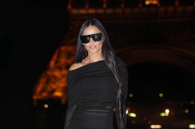 Demi Moore, Paris Moda Haftası kapsamında düzenlenen Saint Laurent İlkbahar/Yaz 2024 defilesinde talihsiz frikik verdi..