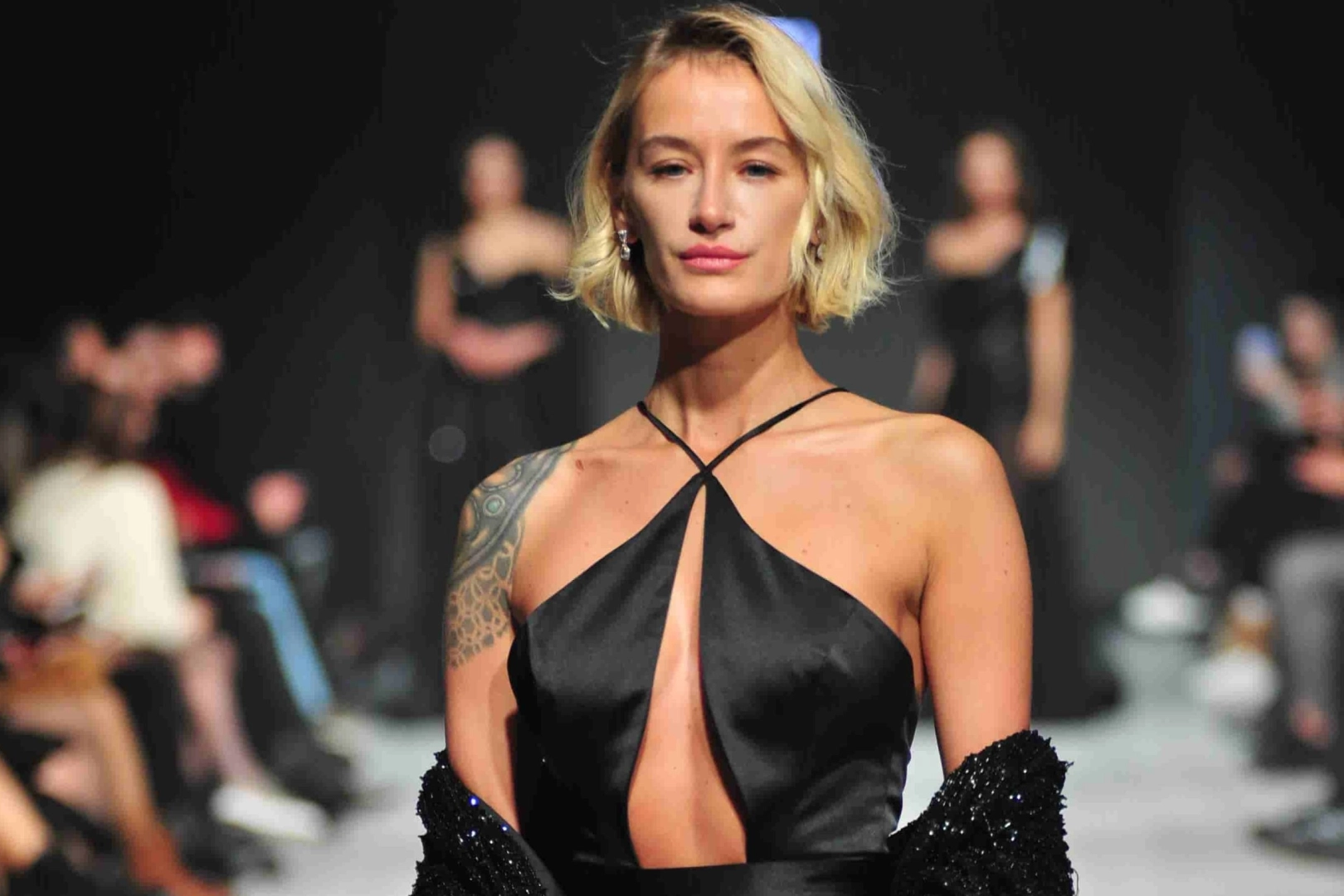 Şeffaf detaylı iç çamaşırlarıyla aynı karşısında geçen model pantolonunu da yarıya kadar indirip yine iddiasını ortaya koydu.