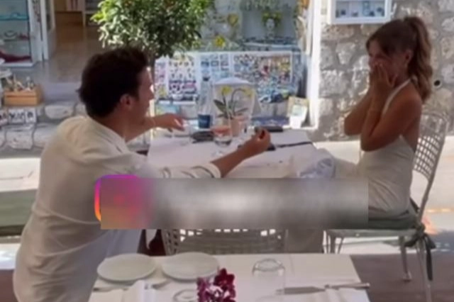 Oyuncu Feyyaz Şerifoğlu, uzun bir süredir beraber olduğu Merve Dinçkol'un önünde diz çöktü ve duygularını paylaştı.