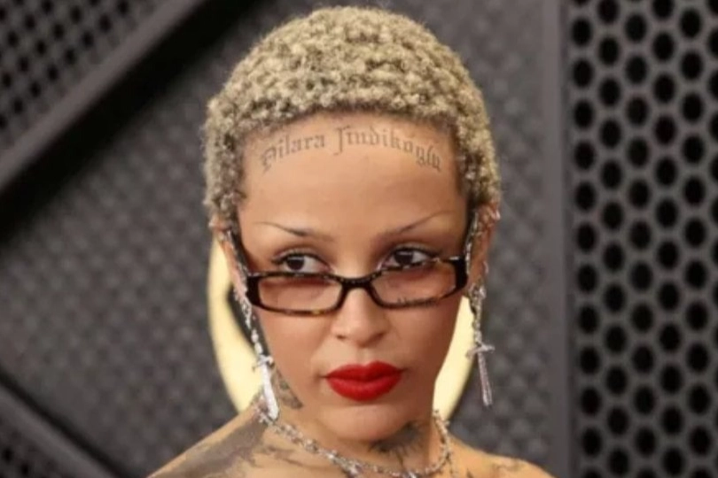 En İyi Pop Solo Performansı, En İyi Melodik Rap Performansı ve En İyi Rap Şarkısı ödüllerine aday gösterilen şarkıcı Doja Cat, törene Dilara Fındıkoğlu imzalı şeffaf korse elbisesi ve gözlükleriyle katıldı.