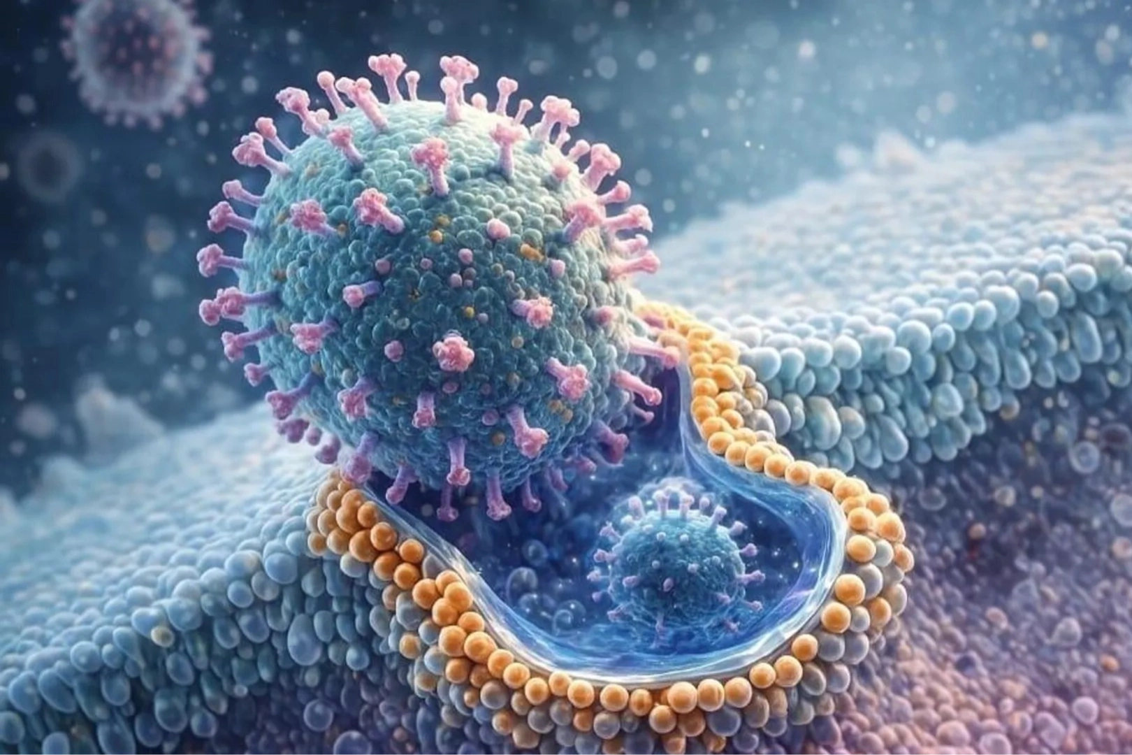 Virüs, hücre yüzeyindeki belirli moleküllere tutunarak zar boyunca ilerliyor, adeta bir sürücü gibi hareket ediyor. Bu "sörf" hareketi, virüsün en verimli giriş noktası olan reseptör bakımından zengin bir bölgeye ulaşmasını sağlıyor.