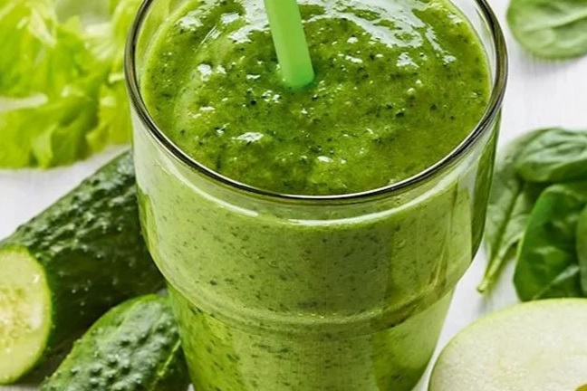 Öncelikli olarak elma, limon, zencefil ve salatalığı iyice yıkayın. Elma ve salatalığı dilimleyip, limonun kabuğunu soyun. Bu malzemeleri katı meyve sıkacağı içerisine koyarak taze bir meyve suyu elde edin.