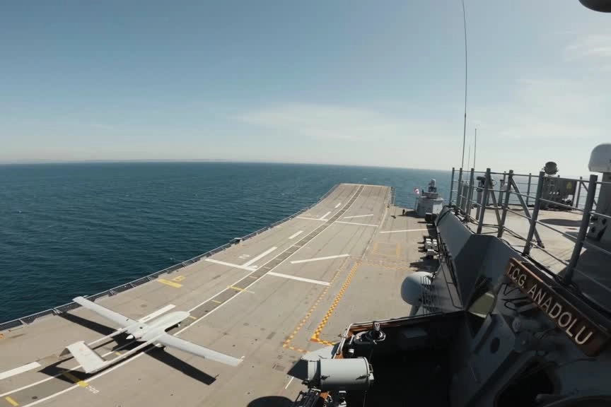 Bayraktar TB3 SİHA, test sırasında Saros Körfezi'nde seyreden TCG Anadolu gemisine 4 sorti gerçekleştirdi. Böylece TCG Anadolu gemisine 4 kez başarıyla kalkış-iniş yapan Bayraktar TB3, son sortisini ise gün batımında tamamladı.