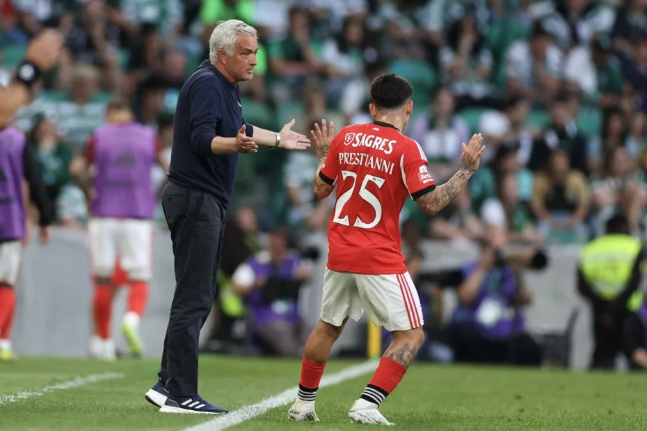 Rafa Silva'nın golüyle Benfica cephesi sevinçten adeta kıyameti koparırken, maçın son düdüğünün çalması sonrası Jose Mourinho yaptığı hareketle yine şaşırtmadı. Rakiplerine karşı daha önce de birçok kez benzer hareketlerde bulunan Mourinho, bu kez göğsünde kendi adına özel tasarlanmış logoyu gösterdi ve ardından parmağıyla kafasını işaret etti.