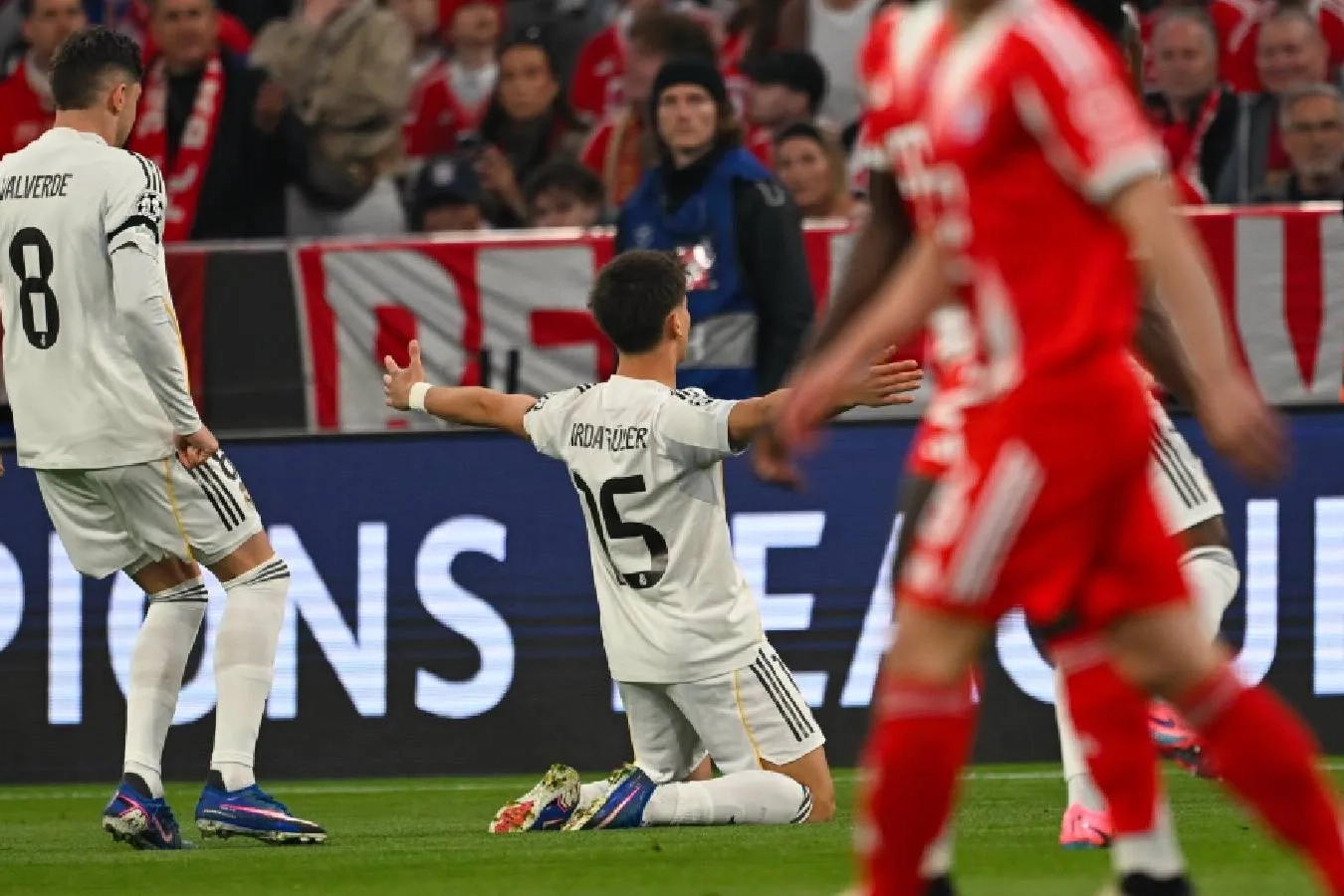 Avrupa futbolunun kulüp düzeyindeki bir numaralı organizasyonun çeyrek final mücadelesinde Bayern Münih'e elenen Real Madrid'de milli futbolcu, rövanş maçında iki kez topu filelere gönderdi. Karşılaşmanın 35. saniyesinde yaklaşık 30 metreden rakip fileleri havalandıran Arda Güler, 29. dakikada da serbest vuruştan meşin yuvarlağı ağlara yolladı.