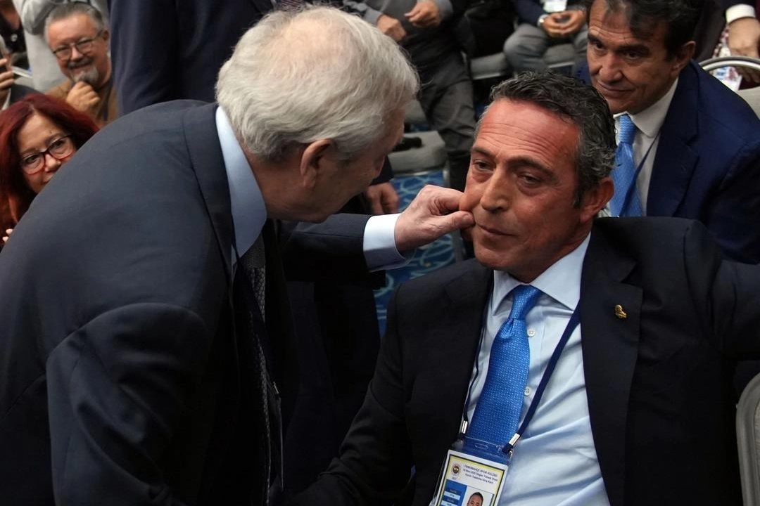 Eski başkanlardan Aziz Yıldırım, kürsüde yaptığı konuşmasının ardından Başkan Sadettin Saran ve yönetiminin elini sıkarken, yerini geçtiği esnada Ali Koç'un yanına gitti ve ikili arasında ilginç bir diyalog yaşandı.