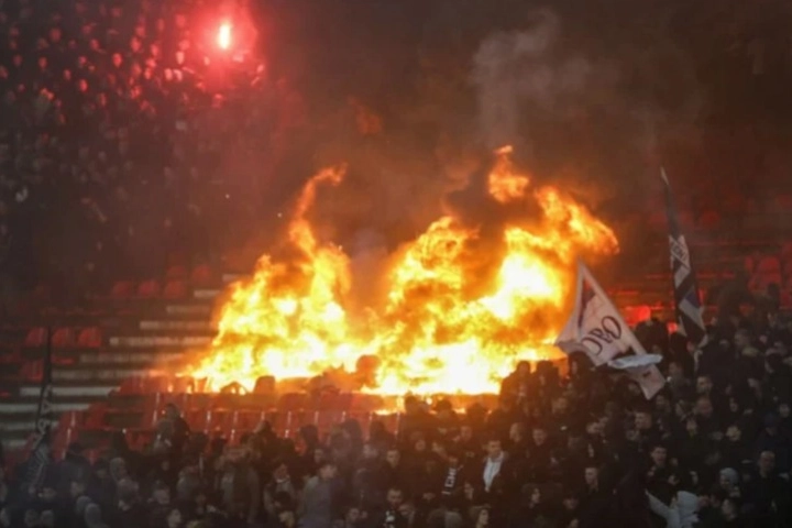Bu arada Partizanlı taraftarlar maçın ikinci yarısının başında tribünlerde meşale yaktı. Meşaleler nedeniyle stadın koltukları yandı. Güvenlik ve itfaiye ekiplerinin alevlere müdahalesiyle ara verilen karşılaşma, kısa süre sonra tekrar başladı.