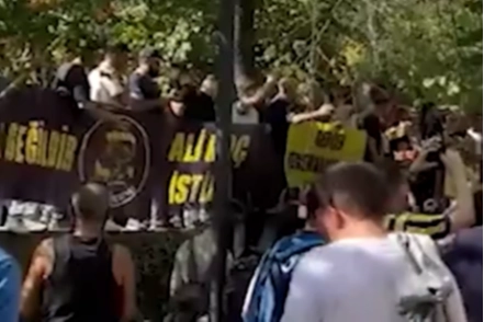 Fenerbahçe taraftarları Yoğurtçu Parkı'nda toplanarak Ali Koç'a, "Ali Koç Başkan, Fenerbahçe perişan" sloganları attı.