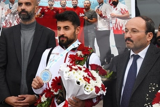 Başarılı sporcu için kentteki havalimanında arkadaşları ve Erzurum Teknik Üniversitesi (ETÜ) ile Büyükşehir Belediyesince karşılama töreni düzenlendi.