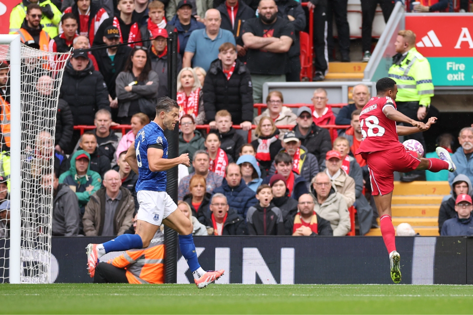 Ev sahibi ekip, 10. dakikada Ryan Gravenberch'ın attığı golle 1-0 öne geçerken, 29. dakikada da Hugo Ekitike'nin kaydettiği golle skoru 2-0 yaptı ve ilk yarı bu skorla tamamlandı. İkinci yarıda konuk takım, 58. dakikada Idrissa Gueye ile farkı 1'e indirse de müsabakanın geri kalanında başka gol olmayınca Liverpool, sahadan 2-1'lik skorla galip ayrıldı. Bu sonuçla Premier Lig'de 5'te 5 yapan Liverpool, yenilgisiz liderliğini sürdürdü. Everton ise ligdeki 2. mağlubiyetini aldı ve 7 puanda kaldı.
