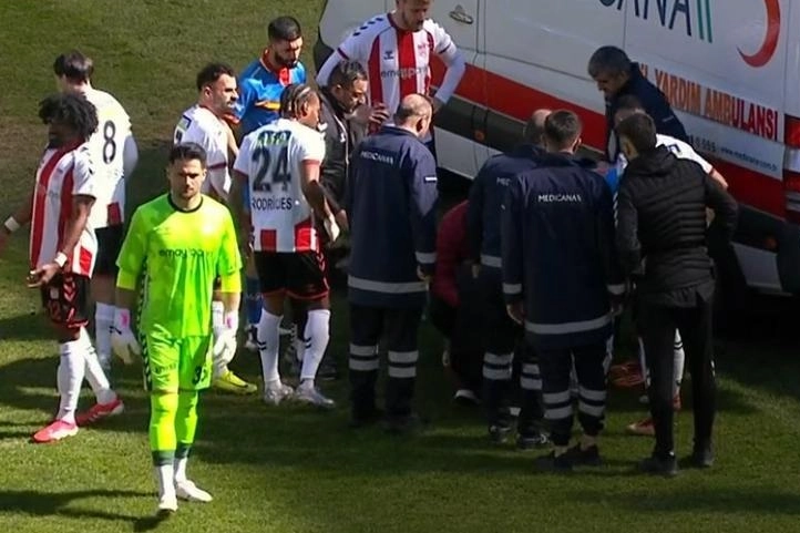 Sivasspor-Göztepe maçının 3.dakikasında Koray Günter ile girdiği pozisyonda sakatlık yaşayan Rey Manaj, ambulansla hastaneye götürüldü.