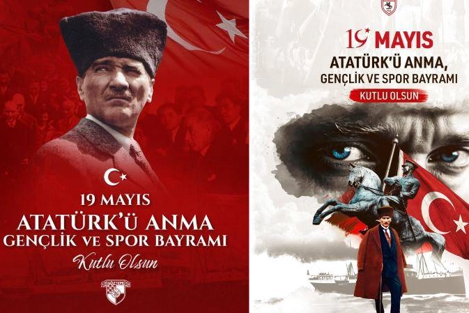 Samsunspor: Ulu Önder Gazi Mustafa Kemal Atatürk’ü, aziz şehitlerimizi ve kahraman gazilerimizi saygı ve minnetle anıyoruz. Bağımsızlık meşalesinin yakıldığı bu kutlu günün coşkusunu hep birlikte yaşıyoruz. Tarihin akışını değiştiren o ilk adımın atıldığı şehrimiz Samsun’un bir değeri olarak, bu büyük sorumluluğun bilinciyle 19 Mayıs’ın gururunu taşıyor; Atatürk’ün emanetini geleceğe aktarma kararlılığımızı sürdürüyoruz. 19 Mayıs Atatürk’ü Anma, Gençlik ve Spor Bayramımız kutlu olsun!