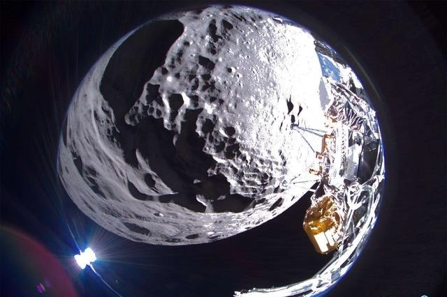 Intuitive Machines, uzay aracının planlanan iniş bölgesinden uzakta bir alanda Ay'daki Schomberger kraterinin geniş görüş alanlı bir görüntüsünü çektiğini ifade etti.