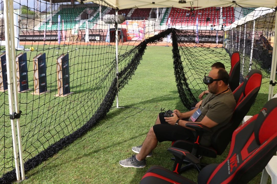 Atatürk Şehir Stadyumu'nda, STM yürütücülüğünde gerçekleştirilen şampiyonanın 2. etap yarışmalarında, ilk etapta yarışan 32 pilottan sıralamaya giren 21 pilot, FPV sistemli yarış dronlarıyla mücadele ediyor.