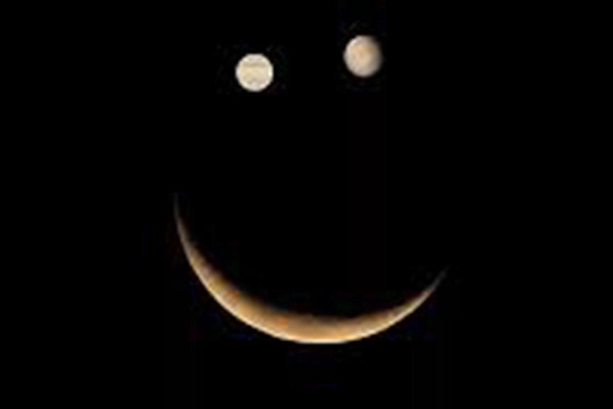 Hilal şeklindeki Ay bir ağız, Satürn ve Neptün ise bu gülümsemenin üzerindeki iki göz gibi görünecek.
