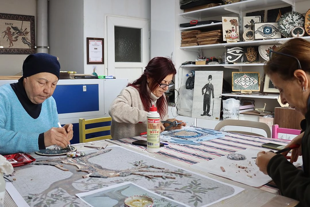 Afetin ardından üretime bir süre evde devam eden mozaikçiler, Hatay Valiliğince kurulan Türkiye Yüzyılı Alışveriş Merkezi'nde tahsis edilen prefabrik atölyede yeniden bir araya geldi.