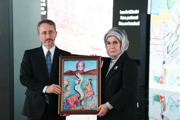 Televizyondan Emine Erdoğan'ı izleyen Gazzeli Maysa Yousuf'un, "Sayın Hanımefendi, gözyaşlarınız bize ulaştı." notuyla Emine Erdoğan'ı resmettiği portre de bir diğer sembolik eser olarak sergide dikkati çekti. Fahrettin Altun, portreyi Emine Erdoğan'a takdim etti.