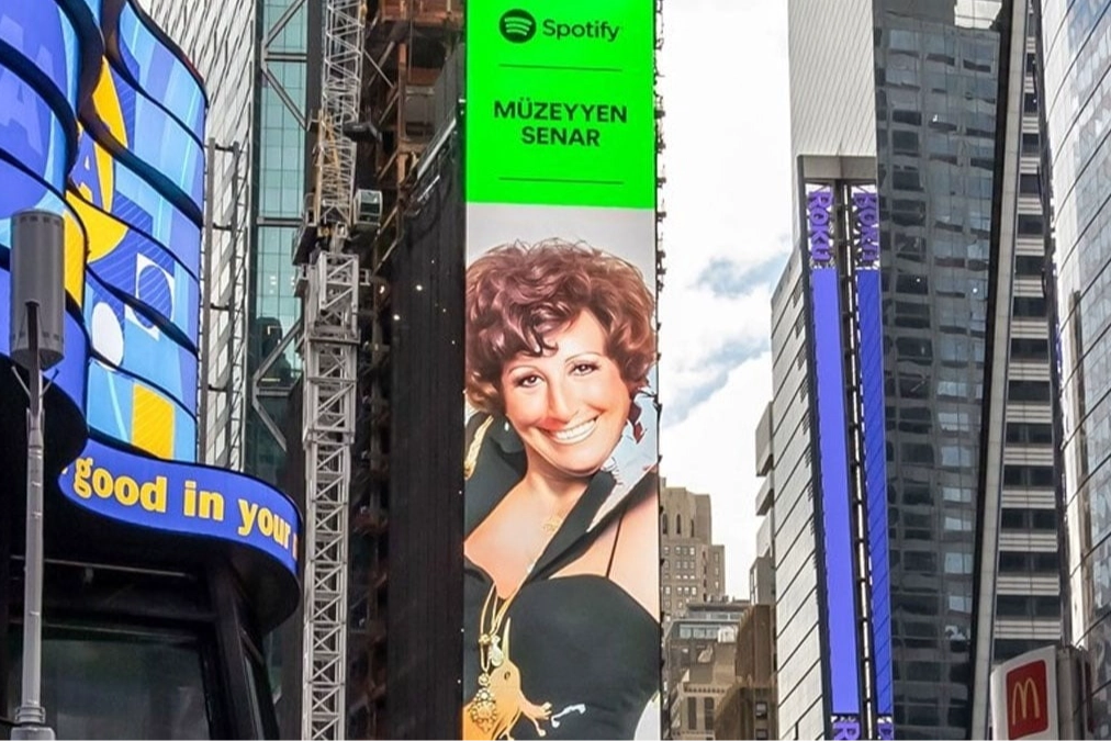 “Cumhuriyet’in 100’üncü yılında Cumhuriyet’in Divası” olarak anons edilen Müzeyyen Senar New York’un meşhur Times Meydanı’ndaki dev ekranında boy gösterdi.