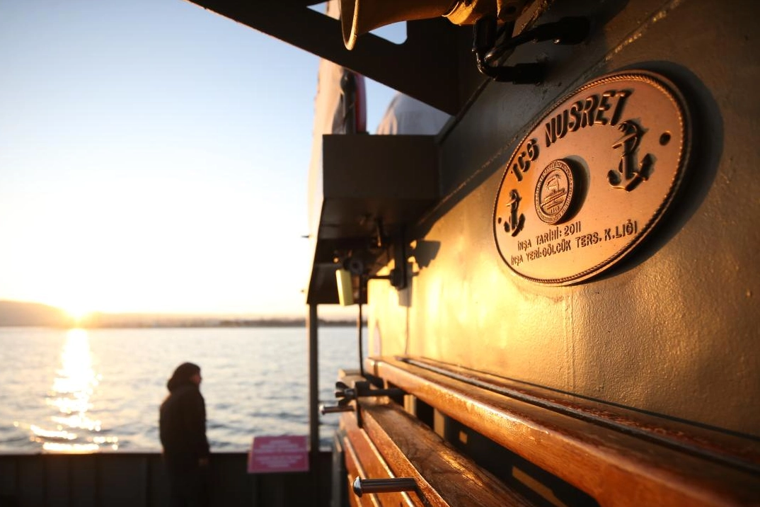 Çanakkale Deniz Müzesi Komutanlığı Yüzer İskelesi'nde demirli bulunan "TCG Nusret (N-16)", mayınlarını döktüğü rotada ilerledi.