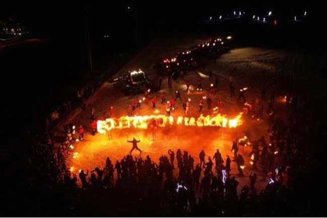 Türk bayrağı ile zirveden kayan kayakçıların ardından meşaleli kayak gösterisi yapıldı. Kar motorlarının gösterisi katılımcılardan tam not aldı.