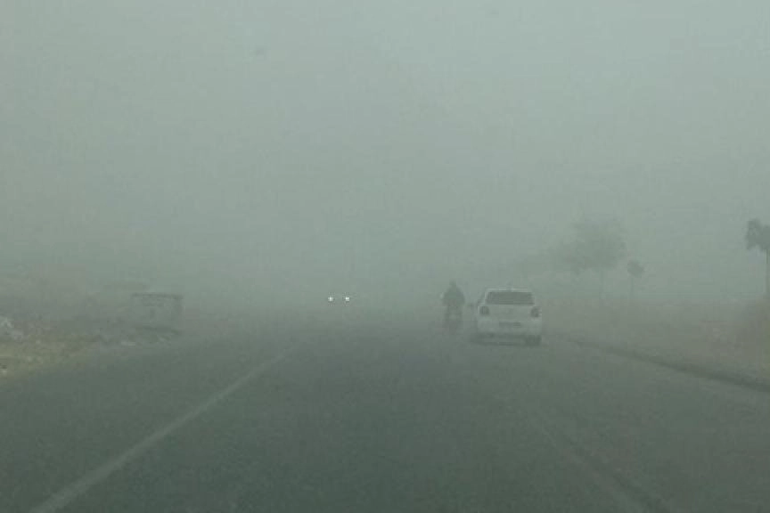Sis nedeniyle araçlar farları açık şekilde ilerlerken, Şanlıurfa-Karaköprü karayolunda görüş mesafesi 25 metreye kadar düştü.