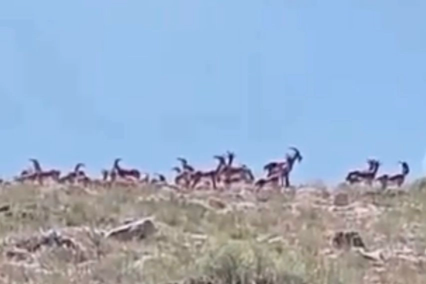Türkiye'de nesli tükenme tehlikesi altında olduğu için koruma altında olan yaban keçileri, Malatya'nın Akçadağ ile Doğanşehir ilçelerindeki dağlık alanda sürü halinde görüntülendi.